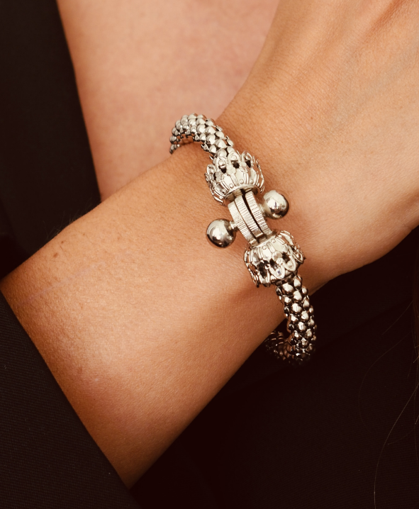 En plus de ses propriétés naturellement inoxydables et hypoallergéniques, l’Or Vénitien existe aussi dans une version argentée.